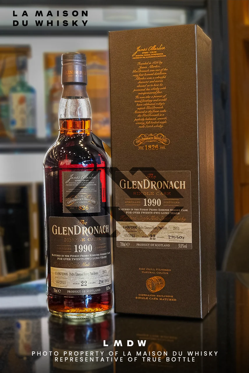 This Glendronach 22 Year Old 1990 Batch 8, matured in a Pedro Ximénez sherry cask (#2971), is a rich and powerful expression of the distillery’s iconic style. After more than two decades of ageing, it delivers an opulent profile filled with ripe dark fruits, chocolate and sweet spice. The nose opens with notes of plum, black fruits, vanilla and cocoa, while the palate fully amplifies these flavours with remarkable depth and intensity. A bold, indulgent single malt that perfectly showcases the richness of PX cask maturation.